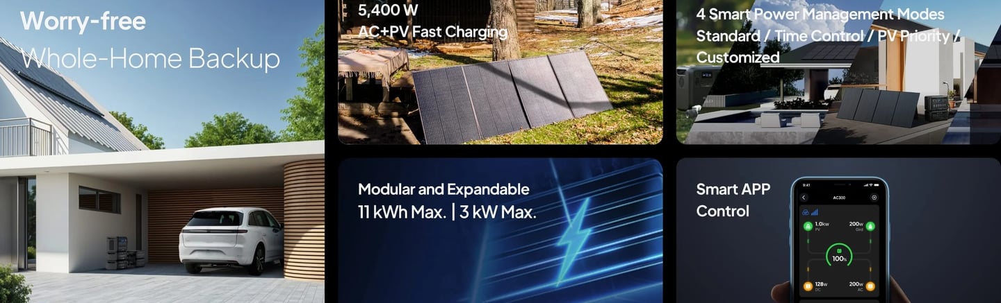 With the AC300 system integrated into your home, you'll have tons of energy to power your day-to-day living smoothly. From necessary appliances to critical devices like EV chargers, enjoy a steady and dependable energy flow that always has your back, no matter what.